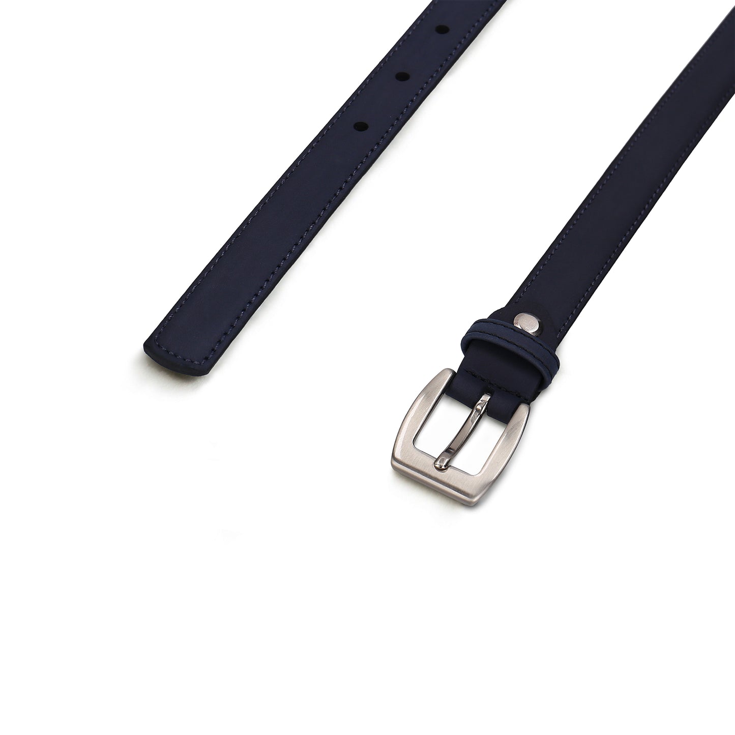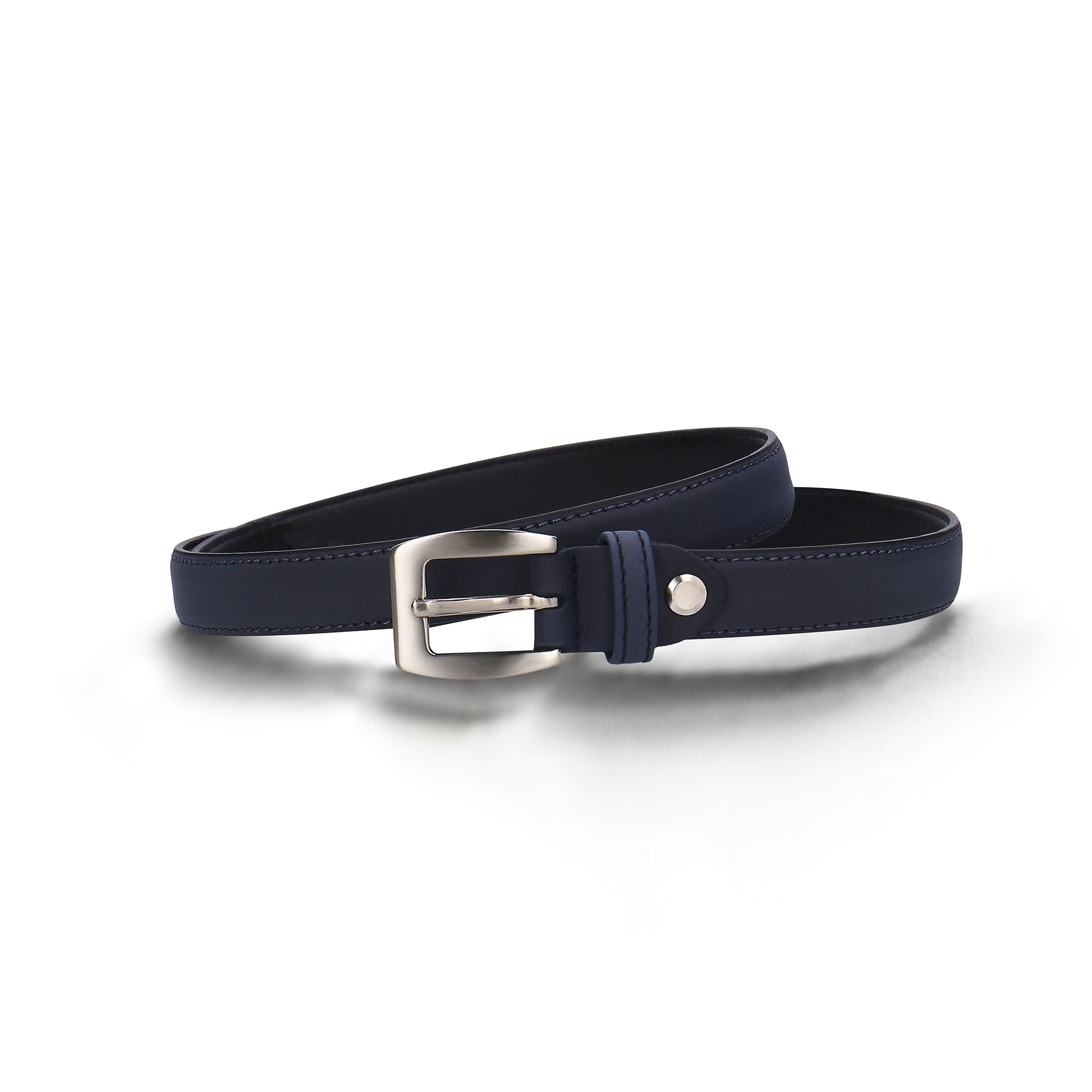 Entdecken Sie Baga Black, den Damengürtel aus veganem Nobuk, einem innovativen, tierversuchsfreien Material. Mit einer Breite von nur 2 cm strahlt sein dezentes, unifarbenes Muster Eleganz aus, ohne Ihr Ensemble zu überschatten. Vielseitig und unaufdringlich, ergänzt er mühelos jedes Outfit. Das lässige, weiche Finish und die freiliegenden, genähten Kanten sorgen für eine längere Haltbarkeit, besonders in der blauen Version, und die leicht gebogene Spitze verleiht ihm eine einzigartige Note. Der Gürtel ist mit einer flachen, quadratischen Schnalle aus nickelfreiem, silbernem Metall verziert, die durch eine sichere Kreuznaht mit einem Metallknopf verbunden ist. Dieser Gürtel verkörpert sowohl Stil als auch Widerstandsfähigkeit auf nachhaltige, ethische Weise.