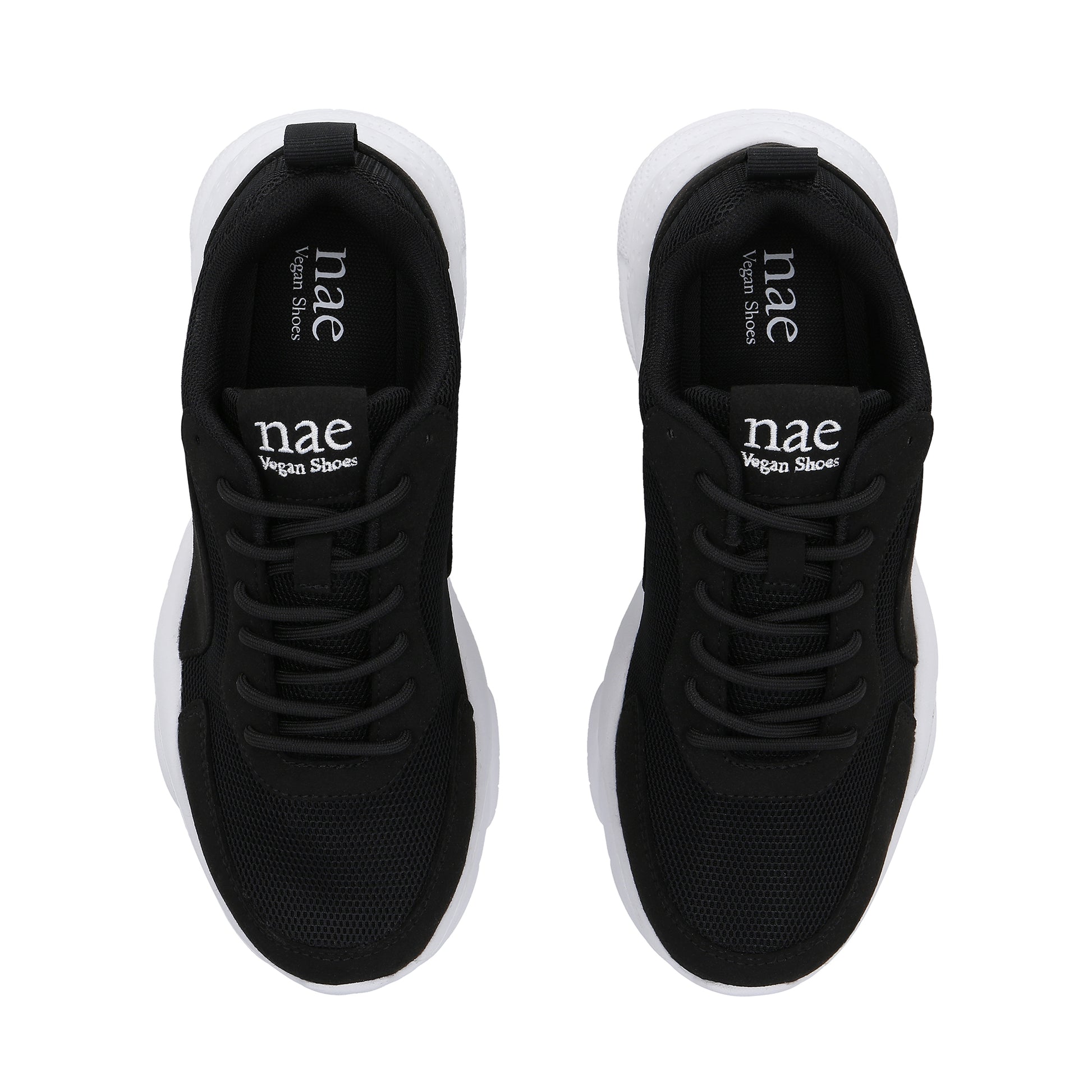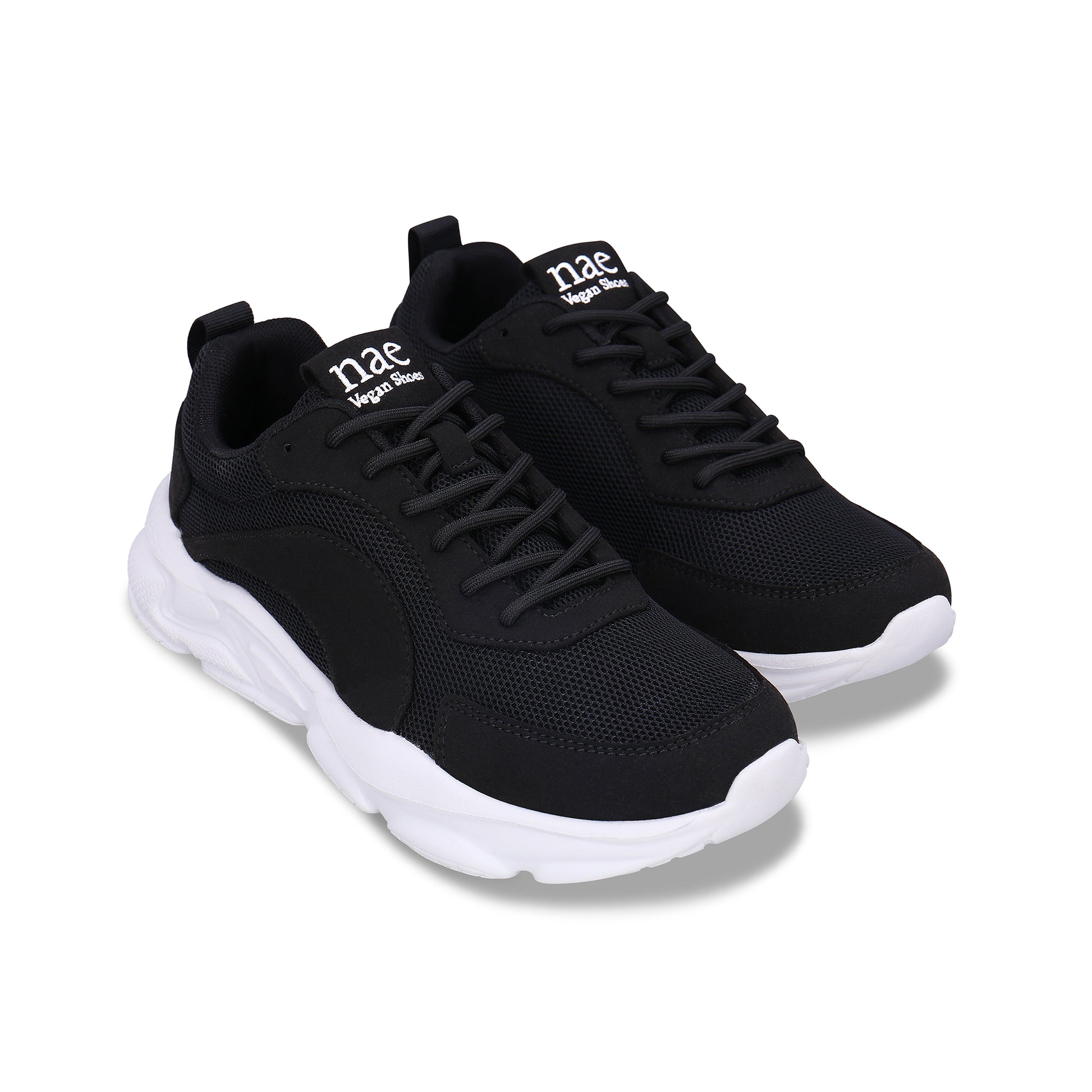 Unisex vegan sneakers made from breathable GRS-certified recycled PET mesh with soft vegan microsuede panels. Dan combines a sporty, running-inspired silhouette with lightweight athleisure comfort, supported by cushioning and a flexible EVA sole. A versatile black sneaker designed for everyday movement.