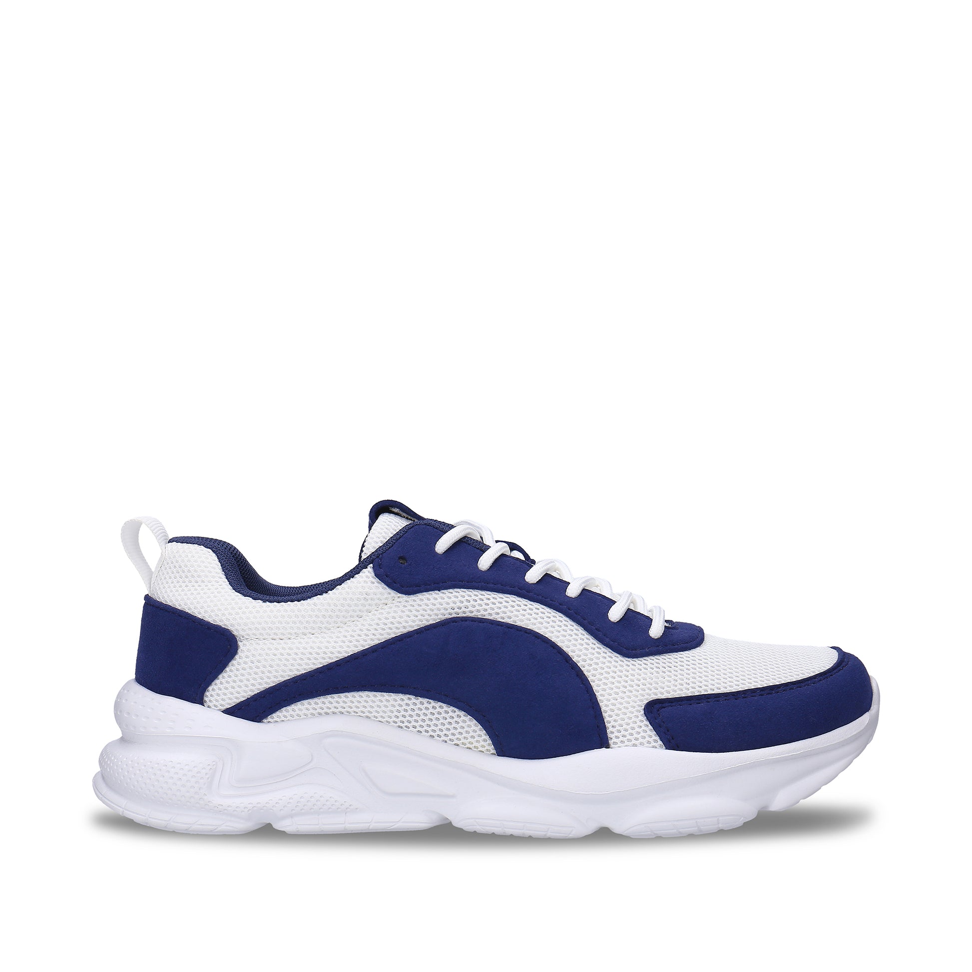 Unisex vegan sneakers made from breathable GRS-certified recycled PET mesh in a fresh white base, combined with soft blue vegan microsuede overlays and matching logo details. Dan blends a sporty, running-inspired silhouette with lightweight athleisure comfort, offering cushioning and flexibility through its EVA sole. A clean, modern colourway designed for everyday movement.