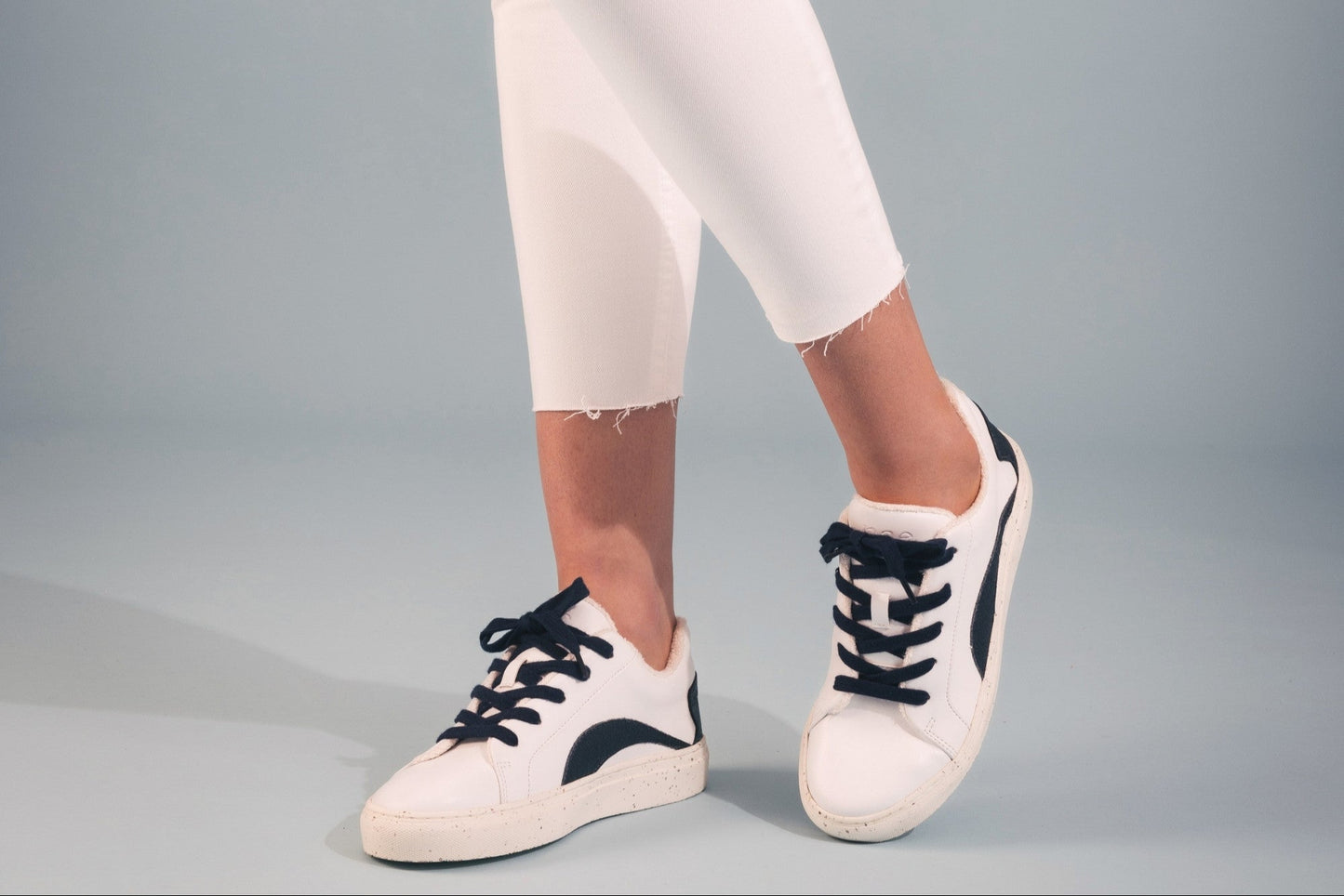 Zapatillas ecológicas con atrevidos detalles de Piñatex azul.
