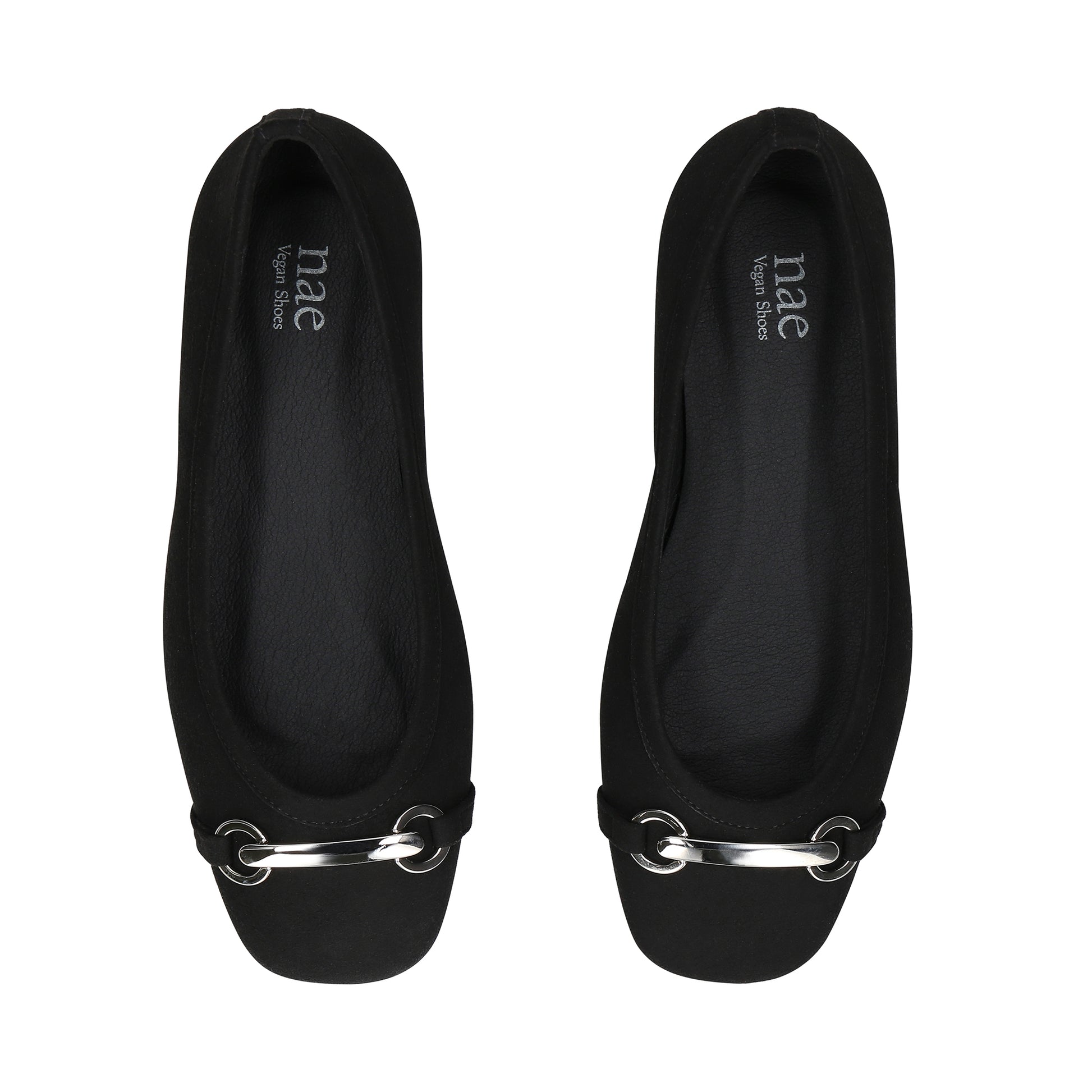 Claire è una ballerina vegana da donna realizzata in morbido microsuede con un raffinato dettaglio metallico color argento. Elegante e minimale, questa ballerina vegana piatta offre comfort quotidiano e grande versatilità. Leggera, flessibile e facile da indossare, Claire è pensata per l’uso giornaliero e uno stile senza tempo. Prodotta in Portogallo con materiali vegani.