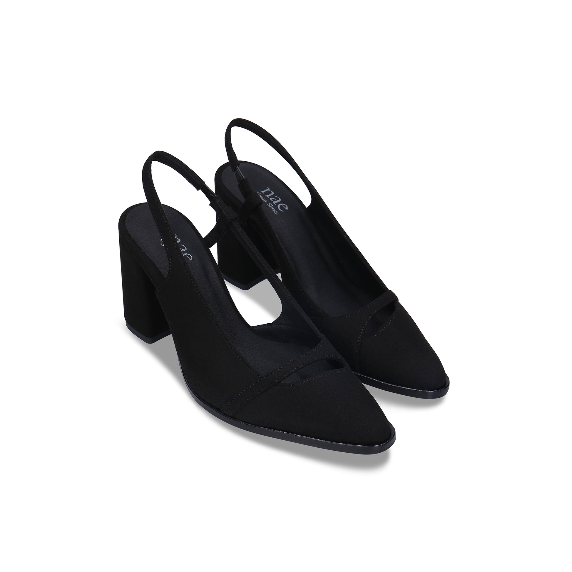 Ember è una scarpa slingback vegana con tacco alto da donna, realizzata in morbido microsuede. Il tacco largo da 9 cm garantisce stabilità e comfort, ideale per uso quotidiano o occasioni speciali.