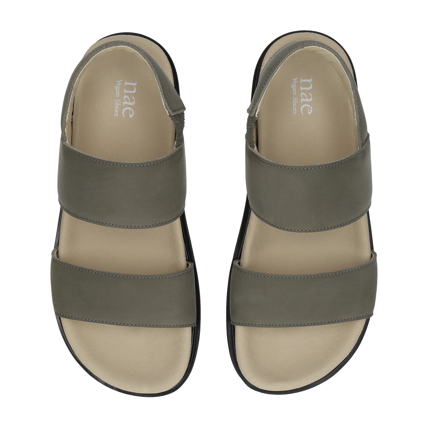 Sandálias veganas com tiras paralelas verdes